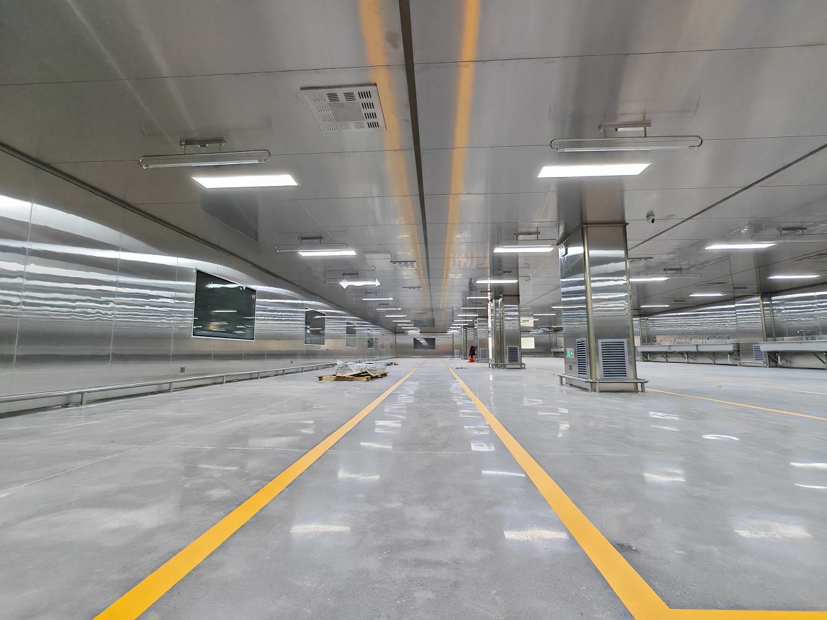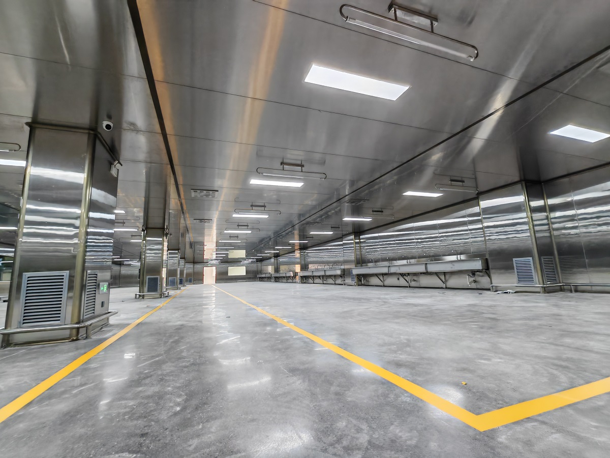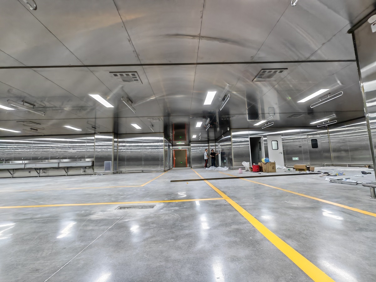项目特色:不锈钢板材,标准十万级,通风管道,新风系统。聚氨酯地面